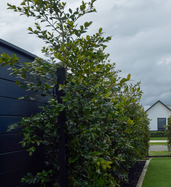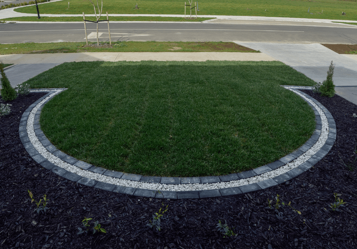 Around the front of the house we've continued using black mulch and Conifers in the garden along with some fragrant Star Jasmine, edged in a semi circle with pavers and gleaming Awarua White Stone. For the front lawn we've rolled some instant lawn from Fine Lawn to ensure a weed free, soft and vibrant lawn, and the only section of the property that will require mowing.